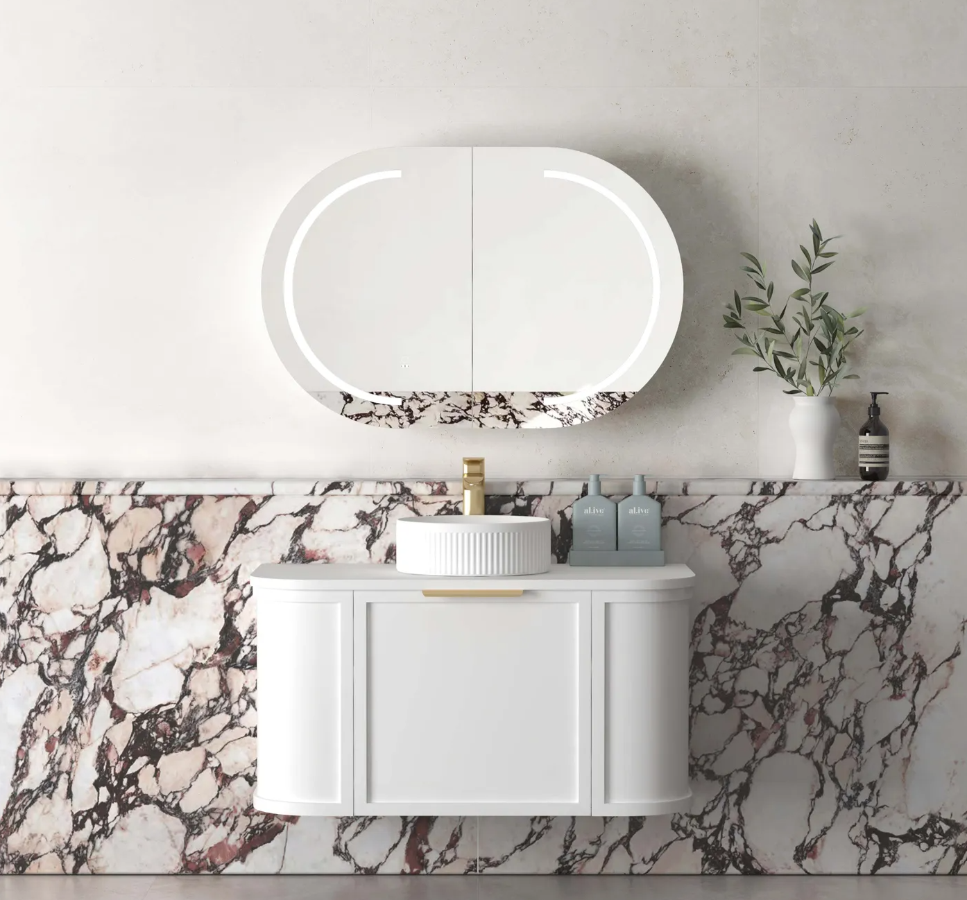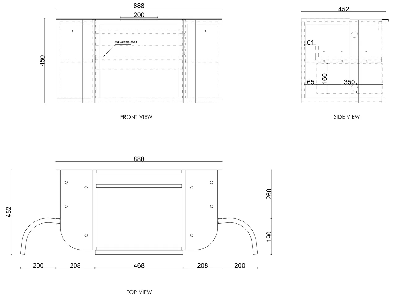 - Wall hung / add legs to make freestanding